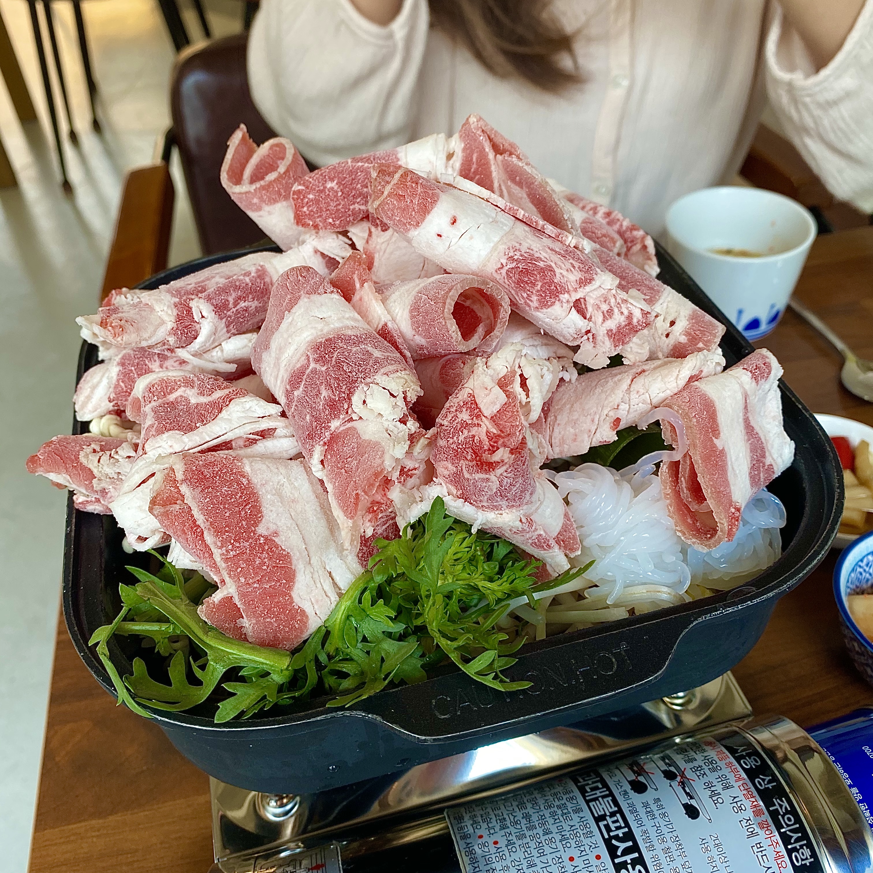 고기를 수북하게 쌓아주는 스끼야끼 집을 사진으로 보게 되었어요 ㅎㅎ