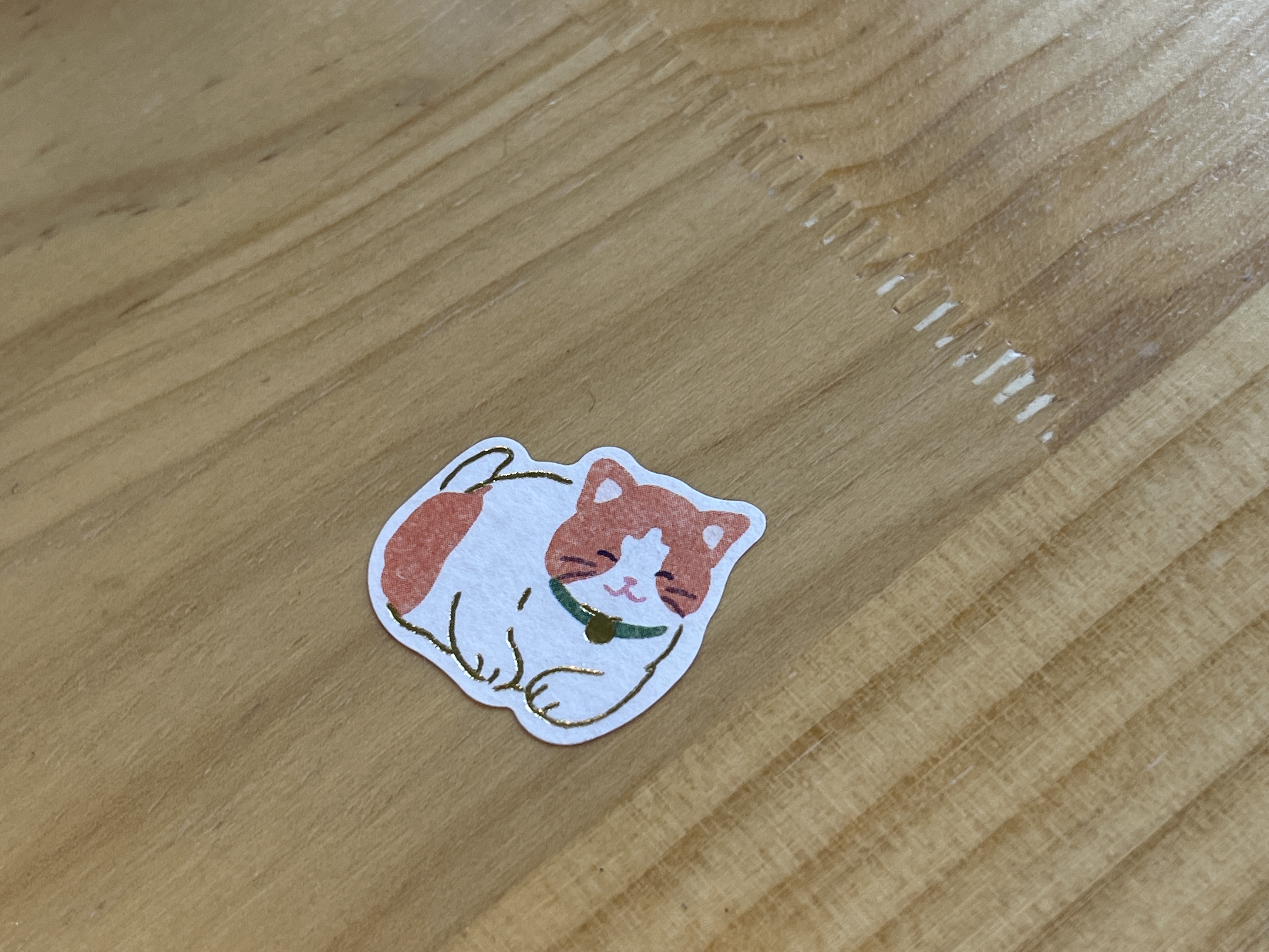 책상에 붙어있는 끼여븐 꼬냥이 스티커