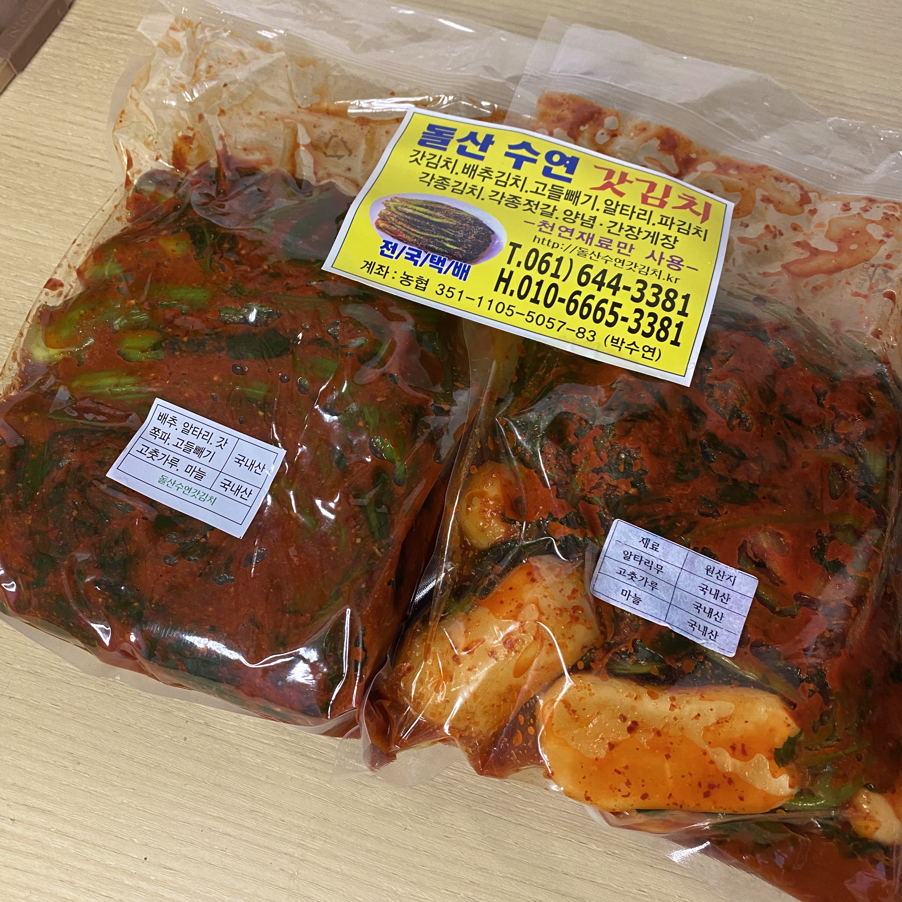 돌산수연갓김치는 모든재료들이 국내산으로 믿고 먹을수 있는 김치 같아요!